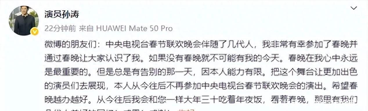 孙涛告别春晚,23分钟视频只为护妻:30年爱情,是平淡里熬出的糖昨天下午,演员孙涛在社交媒体发文,宣布将不再参加央视春晚演出。消息一出,迅速引发关注。